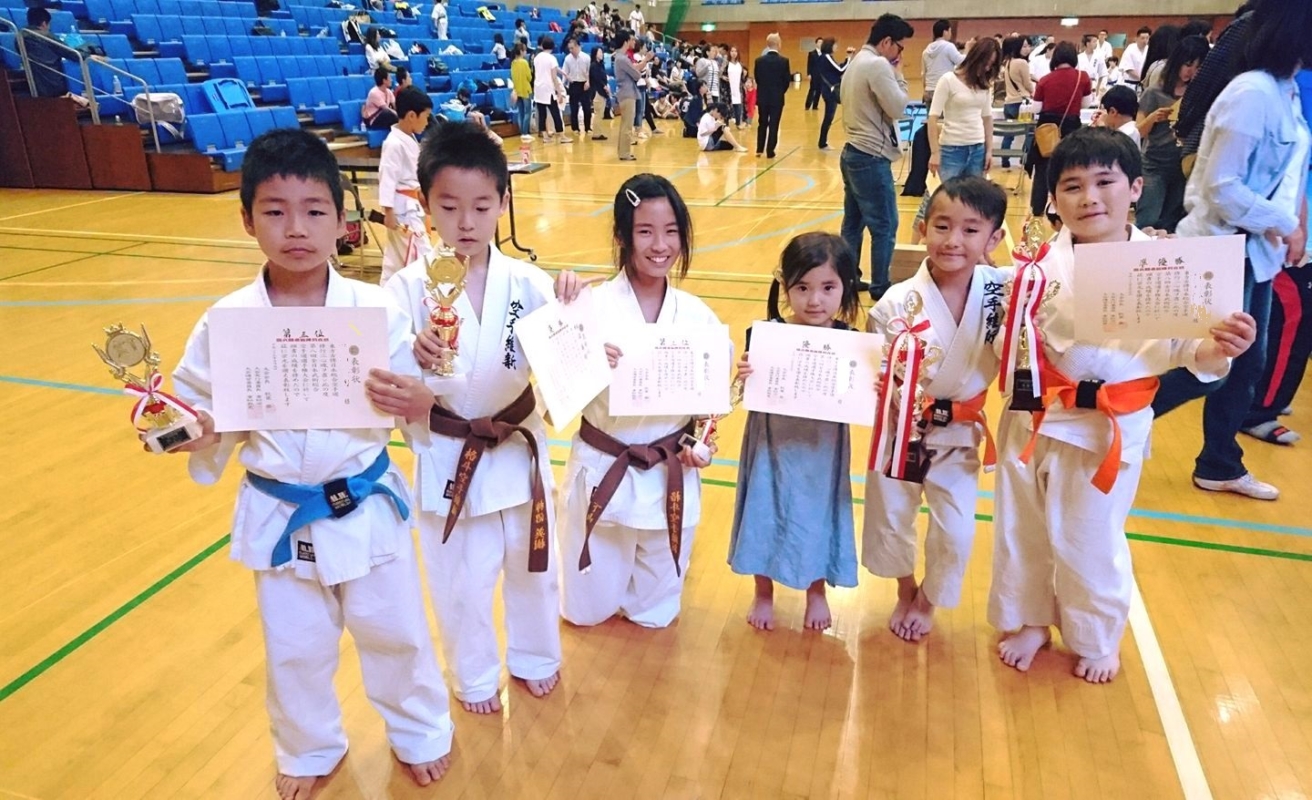 本日の大会結果は、【型の部】小学生全学年上級クラス優勝1名、同クラス3位1名、中学生一般上級クラス3位1名、【組手の部】1年生クラス優勝1名、3年生クラス準優勝1名。連休で出場選手がいつもよりも少ない中、全員がしっかり結果を出してくれました。選手の皆様、おめでとうございます。