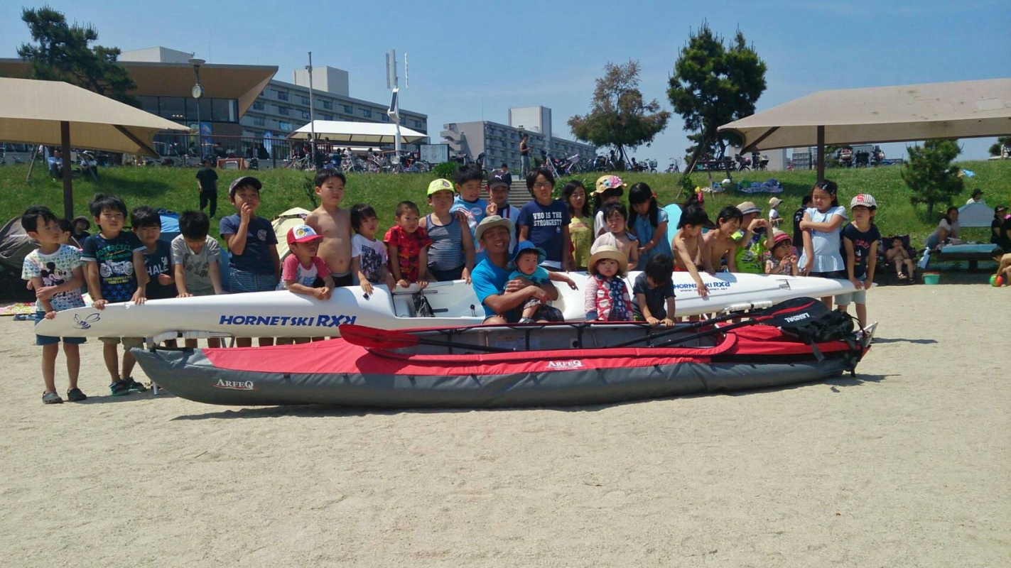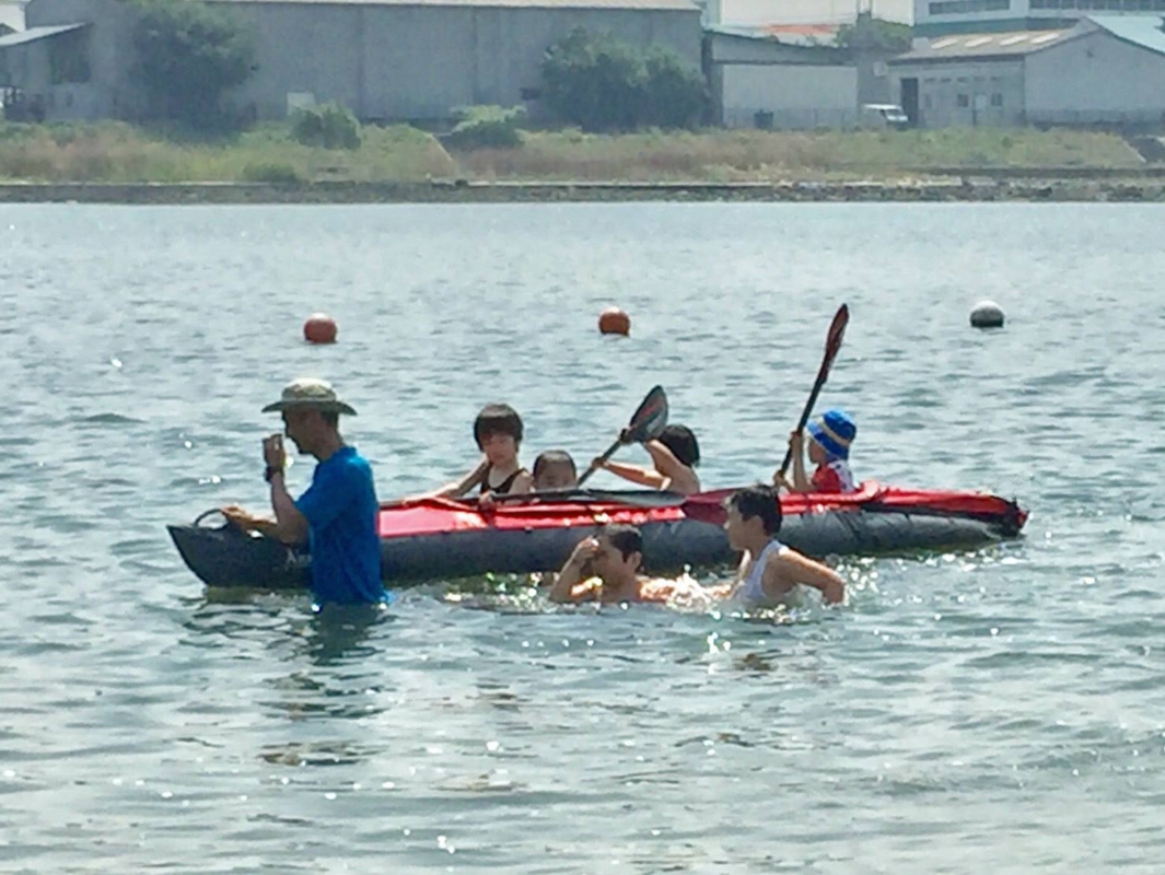 今年一番の暑さとなった昨日の日曜日。ファミリー遠足で近くの浜辺公園へ出掛けてきました。水谷のカヤックを2艇搬入して、カヤック体験。安全確保の為にポニーの乗馬みたいにずっと水谷が引いているのですが、子どもたちは楽しそうで何度も繰り返し遊んでいました。あまりの暑さの為、予定していた時間より早く解散。事故なく楽しめて成功でした。これをきっかけにカヤックも好きになってくれたら嬉しいです。
